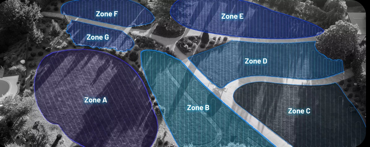 Vous pouvez également définir plusieurs zones de tonte avec des hauteurs de coupe et des horaires variables pour chaque zone. Luba traversera automatiquement chaque zone...