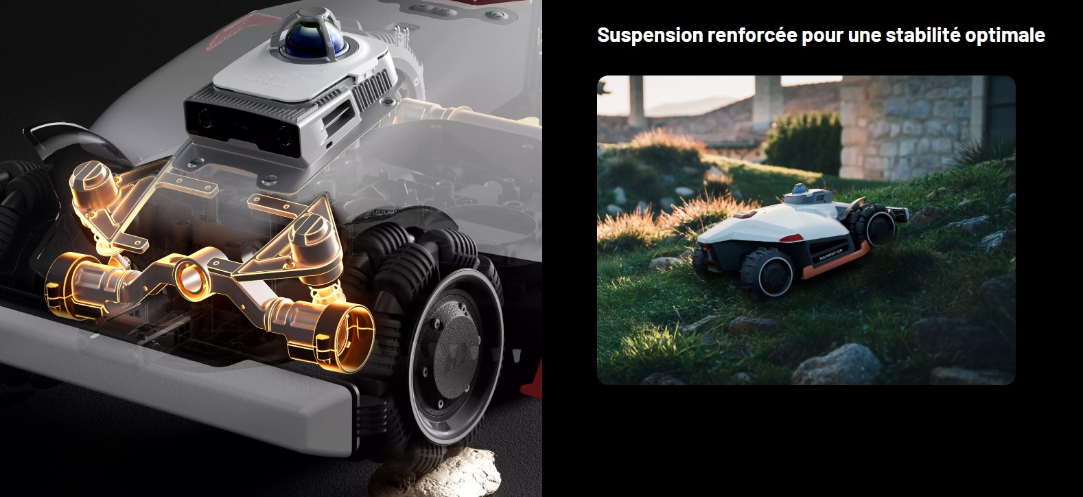 Développé par le laboratoire Mammotion Atlas, il s’agit de la première solution mondiale intégrant LiDAR 360°, NetRTK et vision par caméras pour une précision, une adaptabilité et une stabilité inégalées. LiDAR 360° pour la navigation, vision par caméras pour la détection rapide des objets et NetRTK pour les corrections : le système offre une précision de 1 cm, un basculement intelligent entre capteurs et une navigation fluide sur tous types de pelouses et terrains.