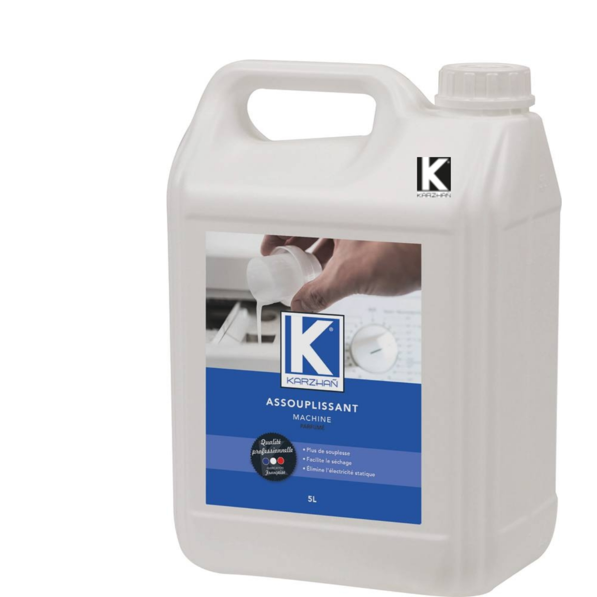 L'assouplissant KARZHAN apporte souplesse au linge, élimine l’électricité statique et favorise le séchage.