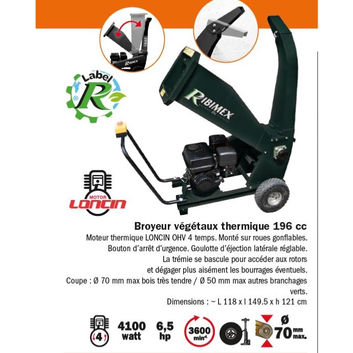 Broyeur Végétaux Thermique 196 cc - "Ribimex"