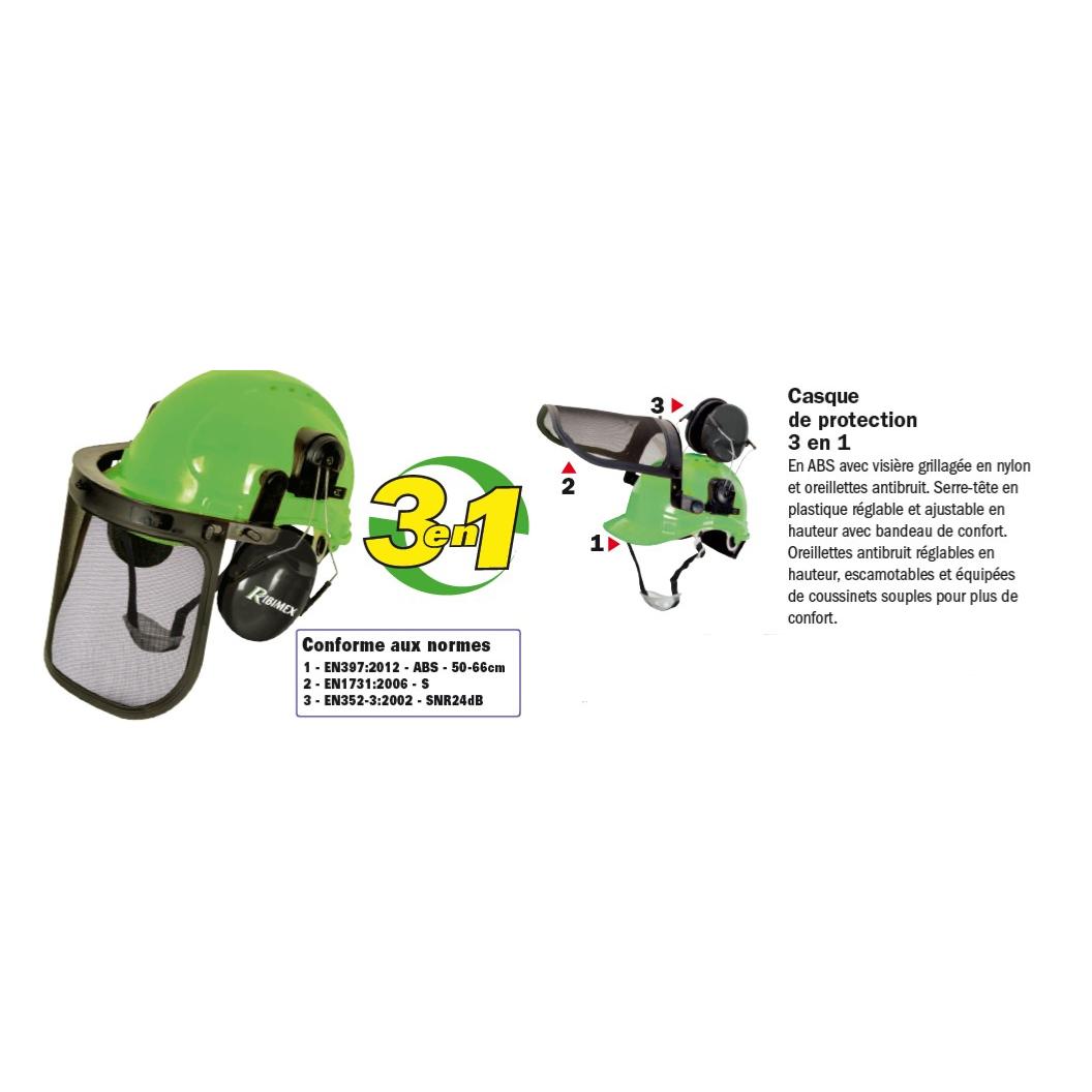 • Casque de protection 3 en 1 en ABS avec visière grillagée en nylon et oreillettes antibruit - "Ribimex"