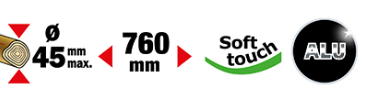 Spécialement étudié pour tous types de bois, son système à démultiplication permet une très grande ouverture et une réduction de l'effort.